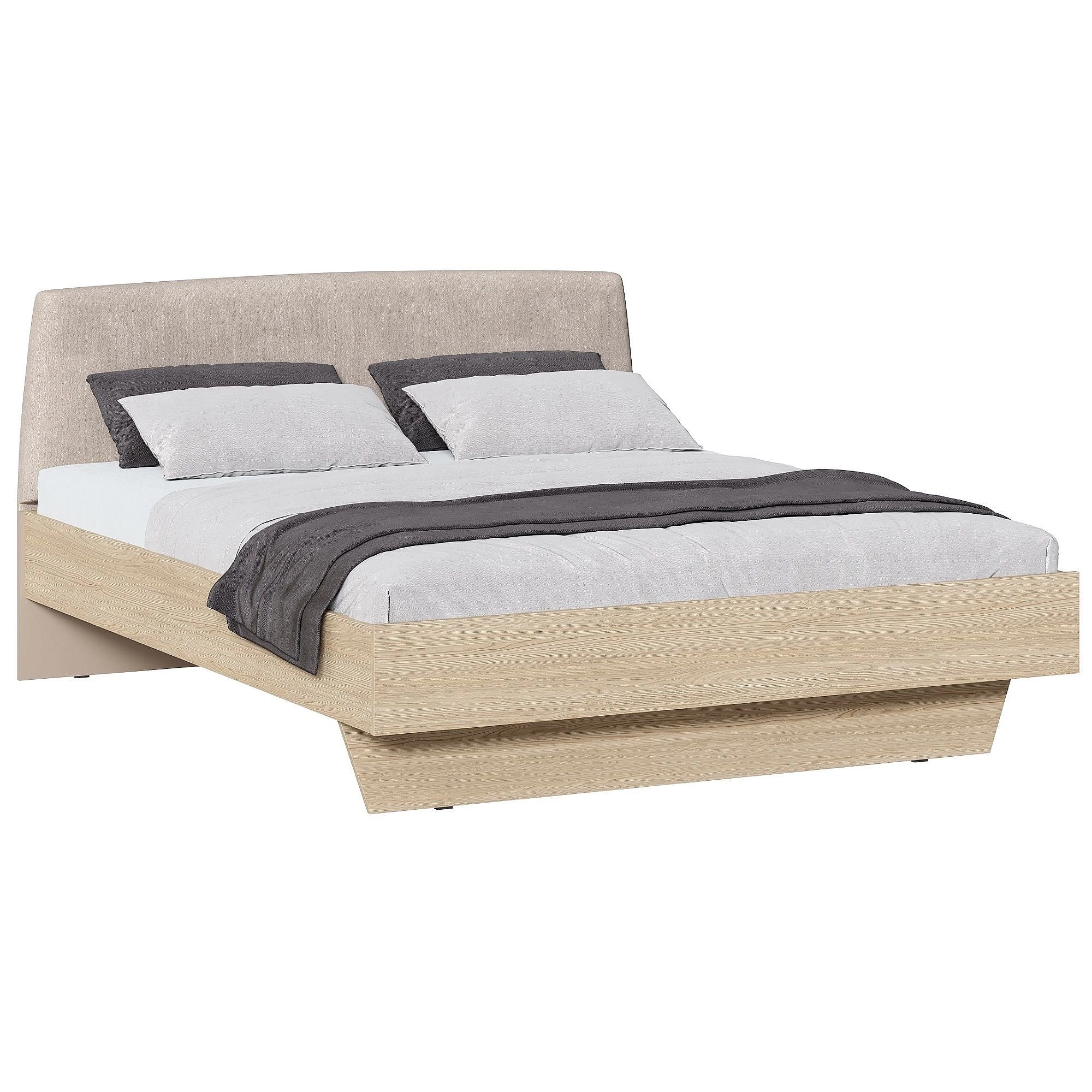 Кровать подходит для современных интерьеров спальни, где важны комфорт и мягкие текстильные акценты.
